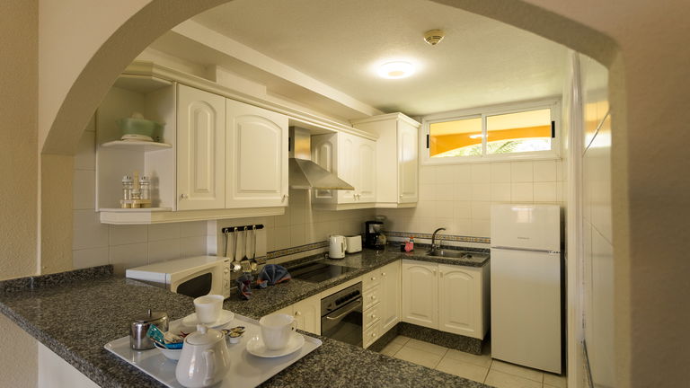 Voel de ware essentie van de Canarische Eilanden terwijl je kijkt naar het gouden zonlicht dat wordt weerspiegeld op de glinsterende zee voor je. Wanneer de lucht langzaam rood kleurt en de vuurbal in de golven verdwijnt, waarom zou je dan niet toosten op dit magische moment met een glas wijn vanaf je ruime privébalkon met uitzicht op de majestueuze kliffen van Los Gigantes? In onze tweekamerappartementen met uitzicht op zee ontdek je de schoonheid van het eilandleven en zul je keer op keer verliefd worden op Tenerife. Met twee slaapkamers - een met een tweepersoonsbed en de andere met twee aparte bedden - en met een extra slaapbank in de woonkamer, biedt dit ruime en karakteristieke appartement plaats aan maximaal vier volwassenen en twee kinderen (tot 12 jaar). Geniet van alle moderne gemakken die je in het hele resort zult vinden voor een ontspannende en vredige vakantie die je nooit wilt laten eindigen!